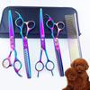 Tijeras Coloridas para Mascotas de Alta Calidad 6.5 pulgadas Peluquería Canina Corte de Pelo Tijeras Planas Tijeras Curvas Tijeras Dentales Tijeras de Espina de Pescado Set