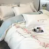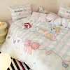 Ins Han Feng 100 pts Algodón de Lija Juego de Cuatro Piezas Engrosado Pic Bordado Estampado Cubre Edredón Corazón de Niña Ropa de Cama Clase A
