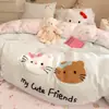 Otoño e Invierno Clase a Estilo Fresco de Dibujos Animados Juego de Toallas de Algodón Cepillado de Cuatro Piezas Bordado Espesado Cálido Juego de Cama de Tres Piezas