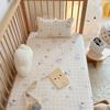 Juego de cuatro piezas de hilo doble capa de algodón de grado A para bebé 2025 nuevo juego de tres piezas de sábana y funda nórdica de gasa de algodón