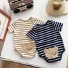 2025 Verano Nueva Llegada Ropa de Hombre Ropa Triangular a Rayas Finas Súper Lindo Dibujo Animado Estampado Bolsa de Bebé Ropa de Pedos