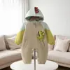 Body de dinosaurio con bloques de color y patchwork, doble capa con forro, para bebés niños, estilo casual, cierre de cremallera, una pieza para uso diario
