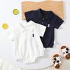 Mono de bebé con textura de gofre, nuevo modelo de verano. Traje de escalada Harper para niño, de color liso, manga corta y solapa tipo polo.