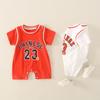 Mameluco de Bebé Verano Ropa de Manga Corta para Niños Ropa de Verano Algodón Puro Delgado Mameluco Estampado de Baloncesto para Niños Pequeños