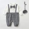 Mameluco para Bebé Moda Primavera y Otoño Estilo Británico Caballero Moño Ropa para Bebé Recién Nacido Algodón Puro Ropa para Bebé
