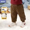Pantalones de pana forrados de polar para bebé, moda de invierno para niños, parche, pantalones rectos gruesos, versátiles y cálidos para niños pequeños, pantalones largos