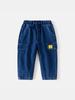 Jeans para niños 2025 pantalones coreanos para niños bebé índigo pantalones con parches de dibujos animados pantalones para niños una generación de cabello