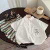 Aimo Beibei Ropa para Niños Primavera y Otoño Nueva Ropa para Niños Unisex Casual Estilo Coreano Holgada Estilo Occidental Camisa a Rayas Moderna