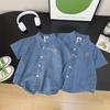 Camisas de Moda de Verano de Manga Corta para Niños Grandes Delgadas Ropa para Niños Tops de Mezclilla para Niños Peace Casual Algodón Puro Moderno