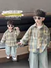 Camisas de Cuadros para Niños Primavera y Otoño Casual Estilo Coreano Chaquetas de Moda al por Mayor Camisas de Cuadros para Niños