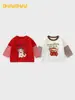 Camiseta de Manga Larga Base para Niños DUUDUU Colección Primavera 2026 Cuello Redondo Bebé Pequeño Falso Dos Piezas Estilo Coreano Camiseta Infantil