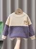Cárdigan de punto con contraste de color elegante para niños estilo coreano, ropa nueva de otoño e invierno para bebés, suéter bordado de moda, ropa para salir, moderno