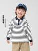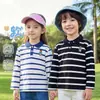 Bonita Camisa Polo de Rayas Blancas y Negras para Niño de Manga Larga Salida de Primavera Camiseta Casual Cuello Camisero Manga Larga Camiseta para Niños