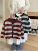 Cardigan Jacket Holgado a Rayas Estilo Perezoso Coreano Nuevo Otoño 2025 para Niños, Moderno y Versátil