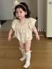 Mameluco de una pieza para bebé Exportación Europea y Americana Caqui Verano 2025 Infantil y Niño pequeño Estilo Princesa de Dibujos Animados Manga Corta Cubre Pañal