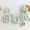 Mameluco Floral de Verano con Lazo para Bebés e Infantes, Manga Corta, Celebración de los Cien Días, Atuendo de Verano de Moda para Niñas, Estilo Coreano Versátil