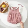 Romper Rojo a Cuadros Dulce con Lazo para Bebé Niña Nuevo de Verano Vestido de Primer Cumpleaños Body