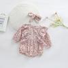 Ropa Infantil Estilo Coreano Traje de Una Pieza para Bebé Niña Traje de Escalada Estilo Occidental Primavera y Otoño Turbante Floral para los Cien Días del Bebé Ropa de Cuna