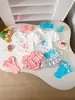 Ropa de otoño para niños, ropa para recién nacidos, mono de tres piezas de manga larga para niñas, traje de pantalón acampanado con flores
