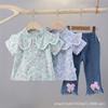 Traje de niña 2023, nuevo estilo, ropa floral de manga corta para bebé, pantalones de verano de dos piezas para niñas.