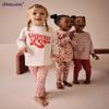 Traje de verano para niños de manga corta Niña Color de amor Contraste Superior Pantalones PP Grandes Algodón Dos piezas Ropa de bebé