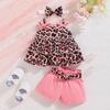 Nuevo Lindo Conjunto de Verano de 3 Piezas Transfronterizo para Bebé Niña con Top de Leopardo con Volantes en el Bajo, Shorts y Diadema Cómodo