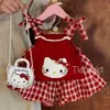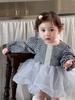 Mameluco Lindo de Tul a Cuadros de Otoño para Bebé Niña Fiesta de 100 Días Onesie Chaleco de Dibujos Animados Tejido Infantil Niño Pequeño Princesa Conjunto de Dos Piezas