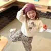 Ropa Infantil Estilo Coreano 2025 Nuevo Otoño Sudadera con Capucha Estampada de Dibujos Animados para Niñas Calcetines de Felpa Leggings Conjunto de Dos Piezas