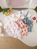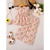 Traje de niña 2023, nuevo estilo, ropa floral de manga corta para bebé, pantalones de verano de dos piezas para niñas.