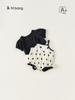Bong Xuan Verano Nuevo traje Estilo Occidental para Bebé Niña Puntos Ondulados Tirante Encaje Triángulo Traje de Gateo Chaqueta de Manga Corta Conjunto de Dos Piezas