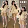 Nuevo Comercio Exterior Transfronterizo Ropa Infantil Verano Europeo y Americano Niñas Camisola Estampada de Mangas Volantes Falda Plisada con Lazo Conjunto de Dos Piezas