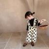 Ropa Infantil al por Mayor Transfronteriza Traje para Niña 26 Primavera y Otoño Nuevo Estilo Camiseta Interior Elástica de Manga Larga para Niña con Peto de Lunares