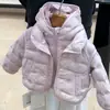 Ropa de Invierno de Algodón para Niñas 2025 Nuevo Estilo Versátil Bonita Chaqueta con Capucha Chaleco Conjunto de Dos Piezas Cálido para Niñas