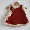 Chaleco Rojo Dulce Xiaosiyuanfu para Niñas Estilo Chino de Invierno Cheongsam Chaleco Engrosado para Bebé Nuevo Traje Tang Infantil para Año Nuevo