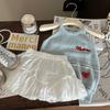 Conjunto para Bebé Niña 2026: Top de Punto Azul Bordado Resistente y Falda de Lino Puro