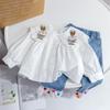 Ropa Nueva de Primavera 2025 para Niños Camisa de Conejito para Niñas Camisa Blanca para Niños Top con Cuello de Muñeca Camisa Baby Doll