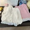 No hay devoluciones ni cambios Camiseta Estilo Coreano para Niñas 2026 Nueva Primavera Bebé Elegante Cuello de Encaje Camiseta Base de Canalé