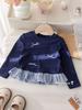 Moda Primavera y Otoño Bebé Niña Dulce Encaje Patchwork Camiseta Base Niñas Elegante Versátil Top Estilo Coreano Capa Interior Base Tendencia