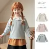 Camiseta de cuello de loto para bebé de primavera y otoño, estilo coreano, para niña, con encaje y cuello de muñeca, manga larga, camiseta básica, top moderno para niños