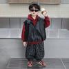 Conjunto de Primavera y Otoño para Niños 2025 Nueva Moda Infantil Chaleco Chaqueta de Cuero para Niño Bebé Casual Conjunto de Tres Piezas Tendencia