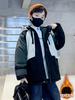 Ropa Parker de Invierno para Niños con Acolchado de Algodón, Forrada de Polar, Gruesa y Cálida 2023 Ropa de Invierno para Niños con Bloques de Color, Chaqueta Acolchada de Algodón para Niños Medianos y Grandes
