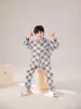 Conjunto de Pijama de Algodón Fresco Estampado para Niño 2025 Cuello Redondo Ropa de Casa para Niños Estilo Casual y a Cuadros Primavera y Otoño