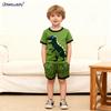 Conjunto de Pijama Infantil de Manga Corta con Estampado de Dinosaurio de Verano Transfronterizo, Pijama de Algodón y Pantalón de Pijama para Niños, Ropa de Casa para Niños Dropshipping