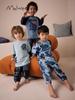 Conjunto de pijama para niños malwee transfronterizo otoño e invierno nuevo estilo europeo y americano para niños pequeños y medianos, guapo, cuello redondo, manga larga, cintura elástica