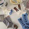 Calcetines para Niños Otoño Categoría a Algodón Niños Calcetines de Media Caña Absorbentes de Sudor y Transpirables Calcetines Deportivos para Niños con Estampado de Dibujos Animados a Rayas con Letras