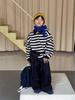 Sudadera de cuello redondo a rayas para niños, moda de primavera y otoño, jersey de manga larga holgado e informal, camiseta de una sola pieza