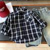 Camisa a cuadros para niños, verano 2023, camisa de manga corta para niños, venta al por mayor, camisa de bolsillo para bebé, camisa a cuadros fresca