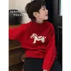 Suéter Grueso de Punto Rojo Simple para Niños Otoño/Invierno 2026 Nuevo Estilo Mediano/Grande Marca Trendy del Año del Caballo Festivo