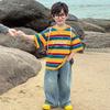 Camiseta de verano de manga corta para niños medianos y grandes, ropa nueva para niños, camiseta de rayas con etiqueta para niños, personalidad moderna y genial, entrega