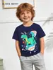 Suministro Transfronterizo Ropa Infantil Moda Estilo Europeo y Americano Camiseta de Manga Corta para Niños Estampado de Dibujos Animados de Dinosaurio Suéter de Cuello Redondo para Niños